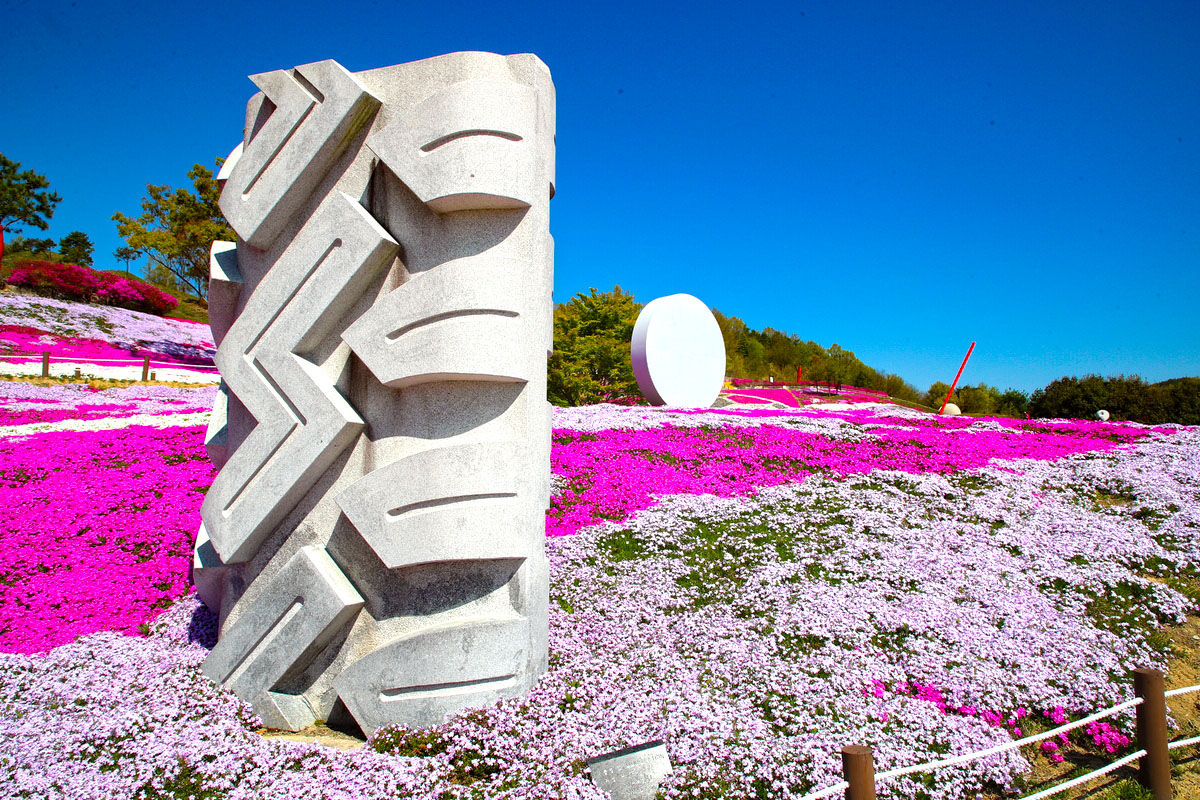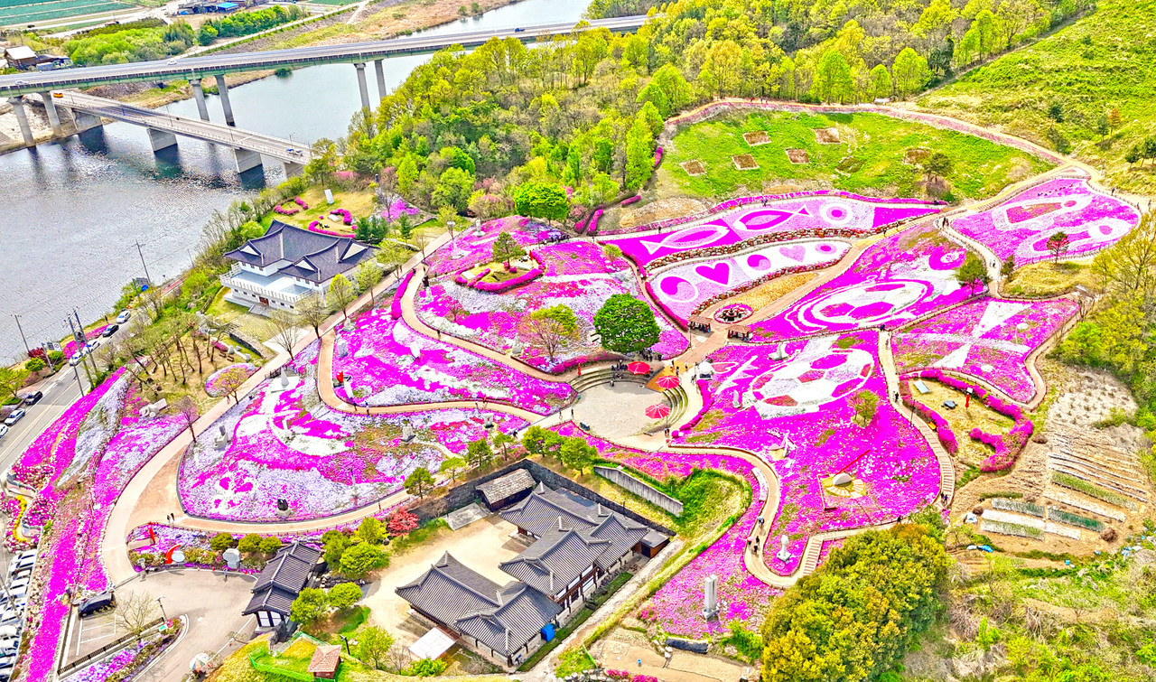3만㎡ 규모의 공원 터에는 화려한 꽃잔디가 만개, 분홍색 카펫이 깔린 야외미술관에 서 있는 듯한 이색적인 볼거리를 제공한다.