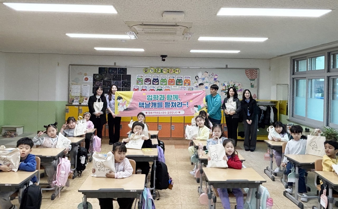 초등 입학생에게 배부되는 책 꾸러미는 연령에 맞춘 그림책 2권, 학부모를 위한 책날개 가이드북, 수첩, 에코백 등으로 알차게 구성돼 있다. 정읍기적의도서관은 지난 3월 25일 정읍초등학교를 시작으로 3월 말까지 관내 8개 초등학교 교실을 직접 찾아가 어린이들에게 꾸러미를 전달했으며, 현장에서 도서관 회원 등록을 받아 회원증을 발급하는 편의도 제공했다.