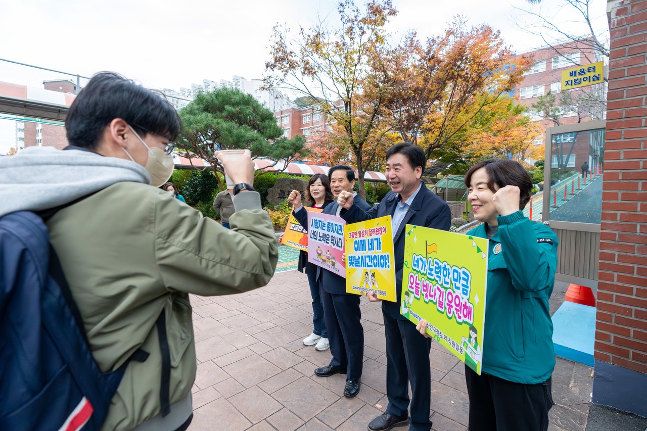 김영욱 구청장은 “이른 아침 수험생들이 안전하고 편리하게 시험장에 도착할 수 있도록 교통상황 유지에 힘써주신 모든 분들게 감사하다”며 “부산진구는 수험생 여러분의 꿈과 미래를 위한 지원을 아끼지 않겠다”라고 말했다.