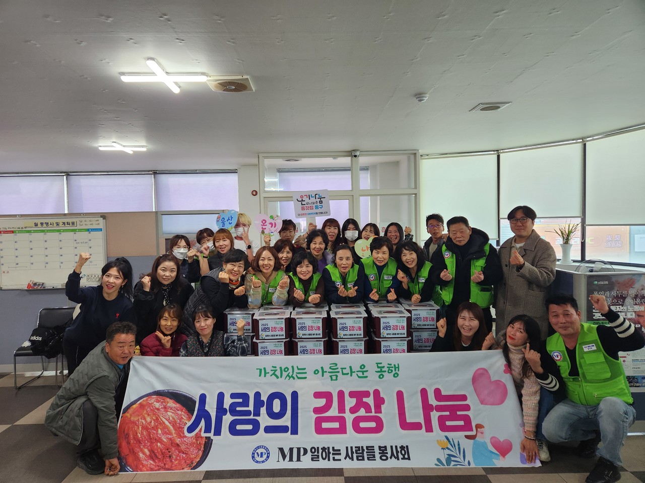 M.P(일하는사람들) 봉사회(회장 한경인)가 11일 (사)울산중구자원봉사센터 중구푸드뱅크(이사장 박민호)에 취약계층을 위한 250만 원 상당의 김장 김치 80상자를 전달했다.