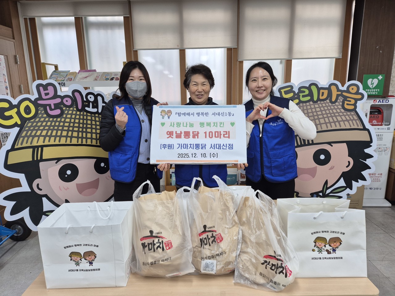부산 서구 서대신1동 지역사회보장협의체(위원장 이복례)는 가마치통닭 서대신점(대표 김미효)의 후원을 받아 지역 내 복지 사각지대 가구, 한부모 가구 등 취약계층에 옛날통닭 10마리를 전달하고 안부를 확인하며 따뜻한 이웃사랑을 전했다.
