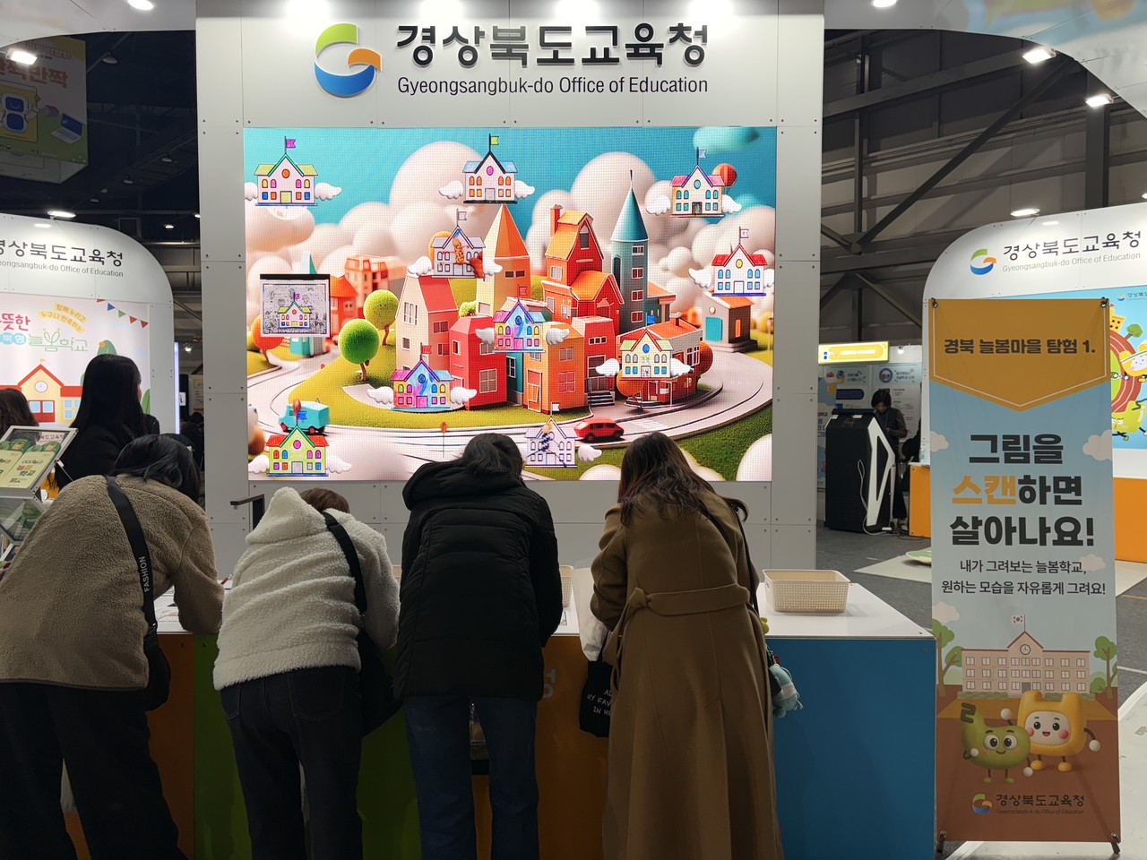 경북교육청은 ‘따뜻한 경북형 늘봄학교’를 주제로 참가해 초등돌봄‧교육 프로그램에서 활용 중인 체험 콘텐츠를 소개한다. 부스에서는 △그림이 움직이는 디지털 체험 ‘인터랙티브 스캔’ △재생 종이를 활용한 친환경 공예 활동 △신체 균형을 확인할 수 있는 밸런스 보드 체험 등 여러 프로그램을 운영한다.