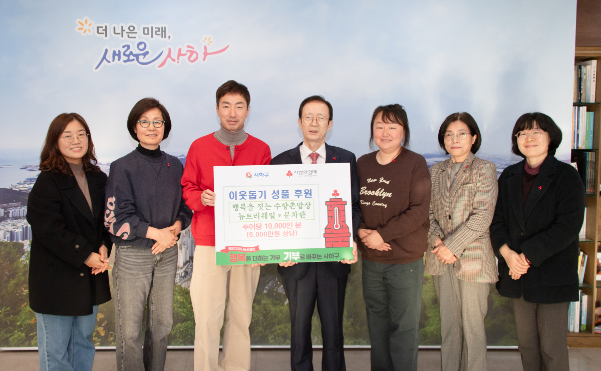 부산 사하구(구청장 이갑준)는 지난 11일, 행복을 짓는 수향촌밥상(대표 이창훈), 뉴트리웨일(대표 권현정), 분차한(대표 조정숙)이 ‘희망2026나눔캠페인’에 동참하기 위해 추어탕 5,000봉(환가액 9천만 원)을 기부했다고 밝혔다.