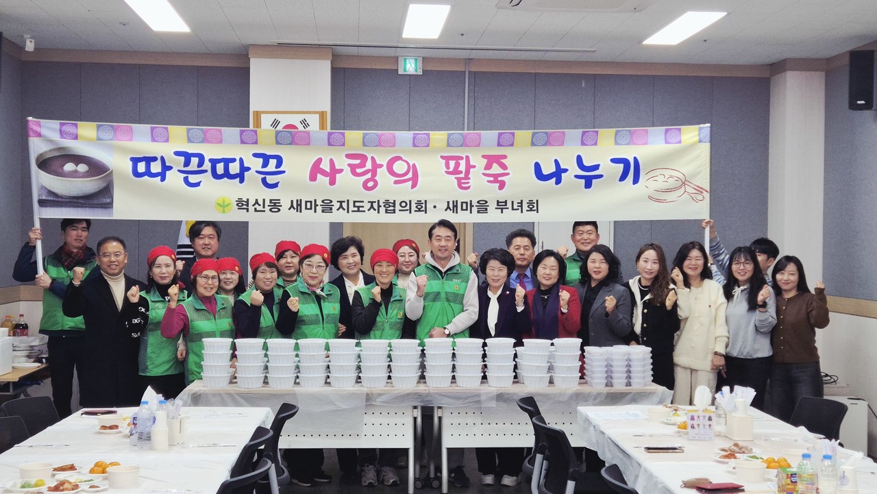대구 동구 혁신동 새마을지도자협의회(회장 황성훈)와 새마을부녀회(회장 권용미)는 지난 12일, ‘2025 혁신동 사랑의 팥죽 나눔 행사’를 진행했다.