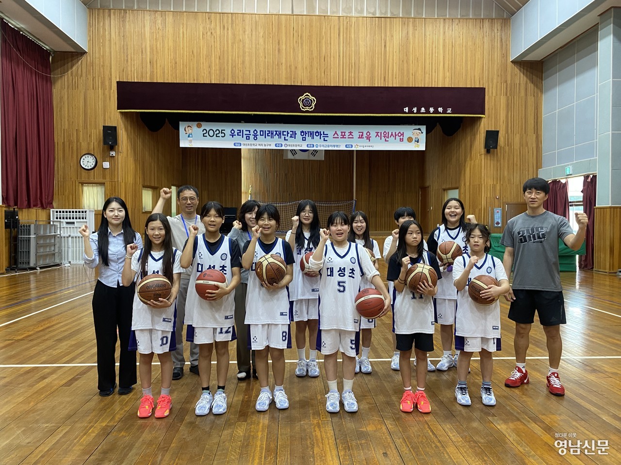 대성초등학교(교장 강정순)는 6월 13일부터 12월 12일까지 6개월간 우리미래금융재단과 ‘농산어촌 및 인구감소지역 학교 스포츠교육 지원사업’ 협약을 맺고 여자 농구부를 운영하였다.