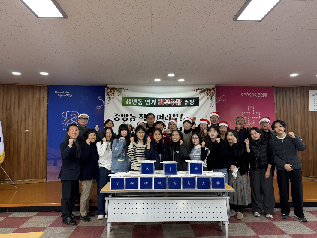정연학 중앙동장은 “올 한 해 직원 여러분의 진심 어린 노력이 있었기에 중앙동이 최우수상의 영예를 안을 수 있었다”며 “앞으로도 주민의 일상에 따뜻함과 희망을 더하는 행정으로 함께 걸어가자”며 감사의 말을 전했다.