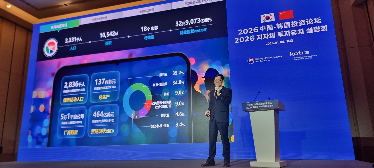 경남도(도지사 박완수)는 6일 중국 베이징에서 열린 산업통상부 주관 지자체 투자유치 설명회에서 경남의 투자환경을 홍보하며 중국 현지 투자유치 활동을 마무리했다고 밝혔다.