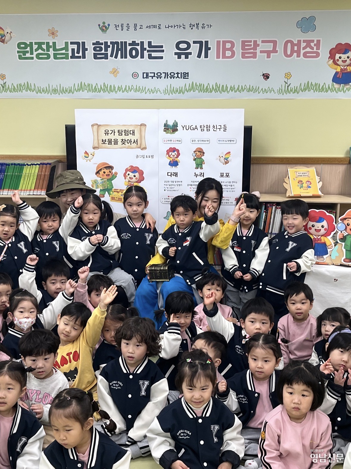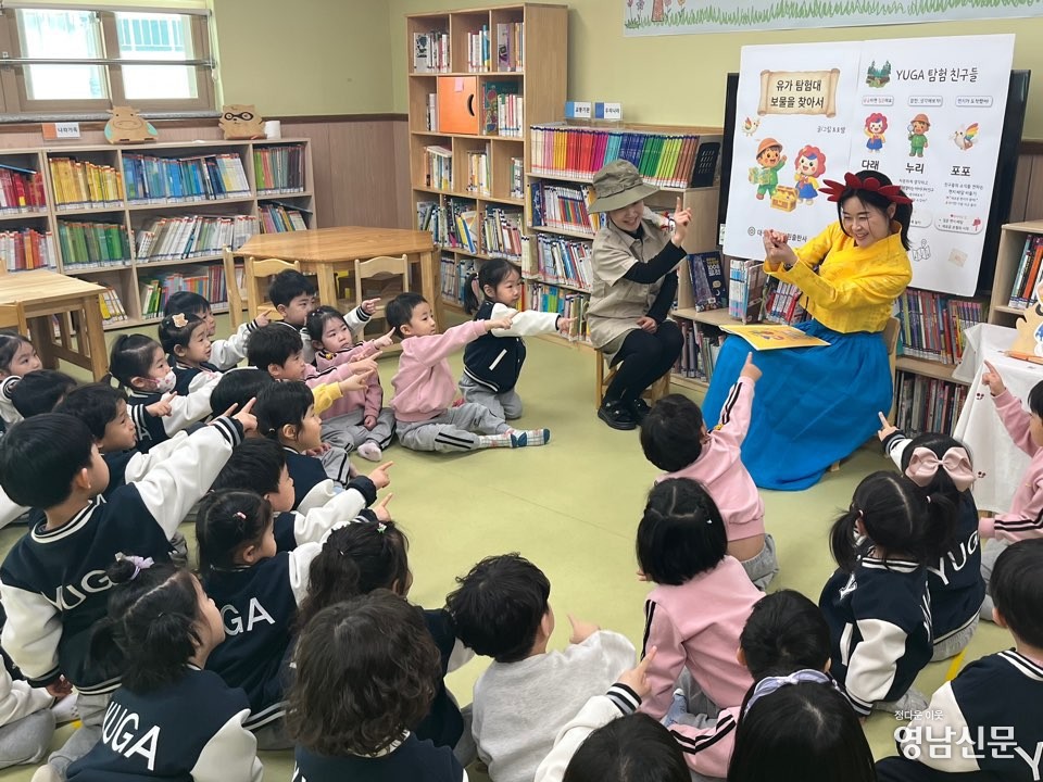 지난 3월 19일부터 ‘책누리방’에서 시작된 첫 여정은 ‘탐구의 시작’을 주제로 진행되었다. 특히 유가 유치원 교사가 자체 제작한 그림책 「유가 탐험대, 보물을 찾아서」를 원장이 직접 읽어주며, 마음속 보물의 의미를 나누고, 유아들이 생각하는 자신의 장점을 소중한 보물에 비유하며 서로 나누는 뜻깊은 시간을 가졌다.