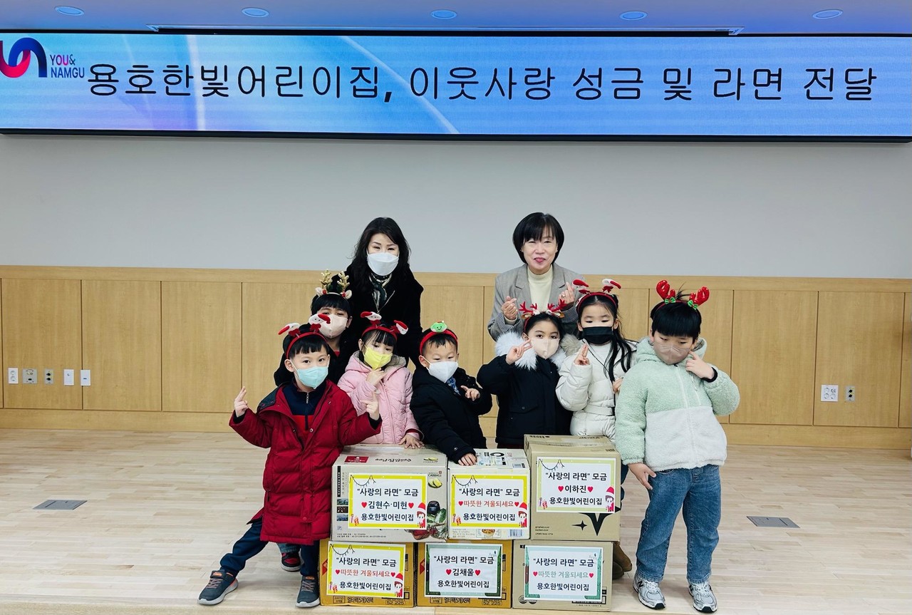한빛어린이집(원장 김경태)은 지난 12월 24일 연말을 맞아 부산 남구 용호2동 행정복지센터에 이웃돕기 성금 20만 원과 라면 6박스를 전달했다.